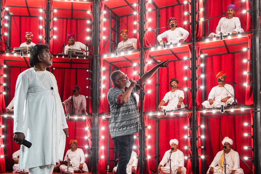 Directed by Roysten Abel, this grand ensemble of 40+ Rajasthani musicians offers a mesmerizing auditory and visual experience. Performers occupy glowing pods stacked in a four-story structure, their music intensifying as more pods light up. A powerful synthesis of sound and spectacle, this performance is an unforgettable celebration of Rajasthan’s musical heritage.